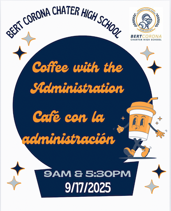 One way to get involved at BCCHS is to come to the monthly Coffee with the Administration wher you can meet our school administrators, learn more about how our school functions, and learn about upcoming events. Most importantly, you can ask our team questions that you have about our school.