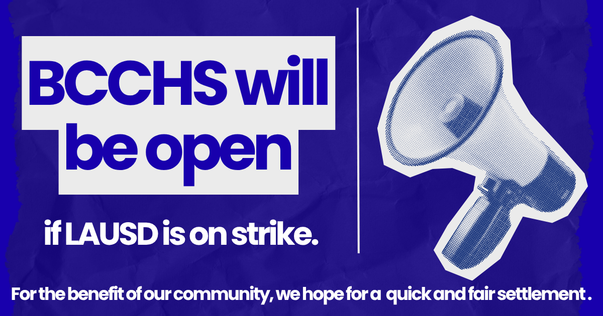 Queremos informarles que las escuelas autónomas de YPI, incluidas la escuela secundaria Bert Corona, la escuela secundaria Monseñor Oscar Romero y la escuela preparatoria Bert Corona, permanecerán abiertas incluso si los sindicatos del LAUSD se declaran en huelga esta semana. El aprendizaje de su hijo/a no se detendrá. El personal de YPICS no pertenece a los sindicatos del LAUSD. Prometemos seguir brindando a nuestros estudiantes un entorno seguro, experiencia de aprendizaje de alta calidad sin interrupciones, que es la prioridad de nuestras comunidades escolares.